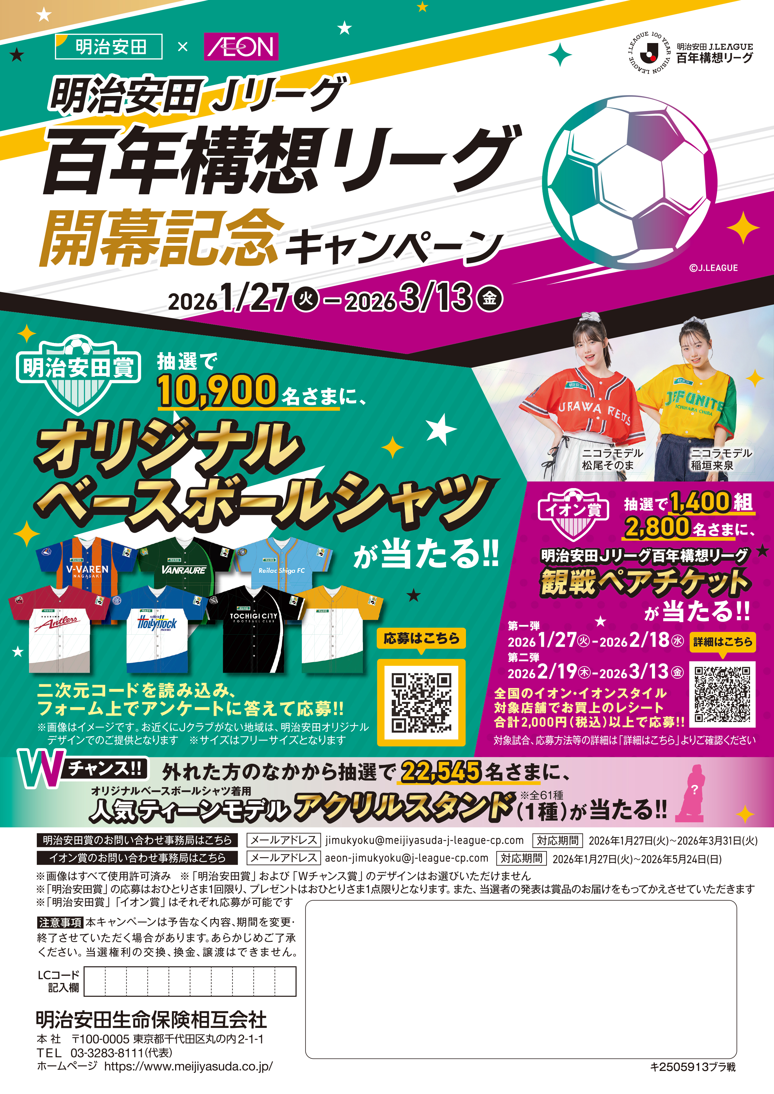 - 「明治安田賞」の応募はおひとりさま1回限り、プレゼントはおひとりさま1点限りとなります。